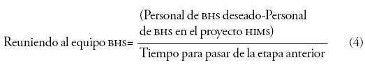En ambos casos, el involucramiento real en el proyecto es el número deseado de personal involucrado, tomado como un resultado del tiempo para pasar de la etapa anterior del proyecto (cuando BHS trabajó en el desarrollo de la valoración inicial del prototipo HIMS) (4).