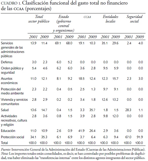2 En 2001, el importe agregado de esas tres políticas de gasto no llegaba a 50 por ciento del gasto no financiero total de las CCAA.