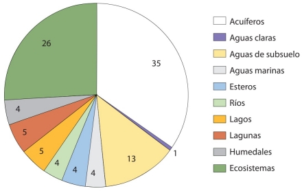 El resto de los servicios mencionados representa servicios de regulación que prestan otros ecosistemas. Aunque se presume la necesidad de conservar múltiples servicios ecosistémicos, estos se conservan mediante la gestión adecuada de los ecosistemas que los proveen y no únicamente mediante el cuidado de la cantidad y calidad del agua. Con el supuesto de poder encontrar servicios implícitos en el texto, se encontraron algunas menciones no reconocidas como servicios ecosistémicos, pero que conceptualmente y a través de interpretación reconocen la importancia de los ecosistemas acuáticos, por ejemplo el caso de los recursos pétreos correspondientes a los materiales de construcción. Pese a que se pueden encontrar algunos servicios implícitos y se han mencionado otros servicios directamente en el texto, la diversidad de servicios que se conjugan con el agua es menor a la que la literatura reconoce (véase MEA, 2005; Haines-Young y Potschin, 2017). Además, solo se reconocen los servicios de regulación, desconociendo la pluralidad de valores socioculturales y económicos que los ecosistemas asociados al agua pueden proveer. Con base en la presente investigación, podemos decir que el concepto de SE no tiene mayor relevancia en el cuerpo del documento, ni en ninguno de los procesos de gestión, sanción o planeación.