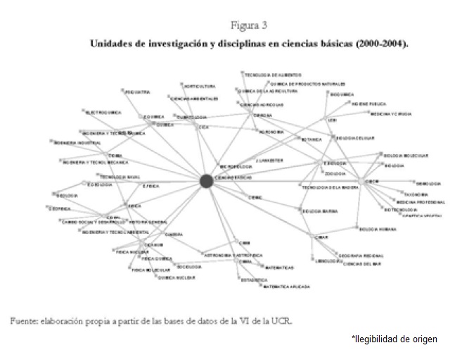 La primera consideración distintiva de la UCR es que es una universidad disciplinariamente compleja pero pequeña de manera relativa. Prácticamente no hay disciplina universitaria que no se practique en su seno; sin embargo es relativamente compleja para ser una universidad nacional. La segunda, es la gran consistencia de las categorías de clasificación, las estadísticas de sus actividades de investigación y la salvaguarda de su patrimonio archivístico. Estas consideraciones hacen de la UCR un objeto de estudio consistente para el análisis reticular que nos hemos propuesto.