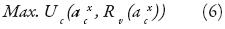 Se supone así que para cada a cx el problema de optimización del jugador 2 tiene una solución única que será R v (a cx), es decir, la mejor respuesta a la acción del jugador 1. Debido a que el jugador 1 puede incorporar dentro de su función de utilidad la decisión del jugador 2 (recordar que el juego es de información incompleta pero perfecta), el jugador 1 debería prever la acción del jugador 2 a cada acción a cx que él mismo tome, así su problema de optimización sería: