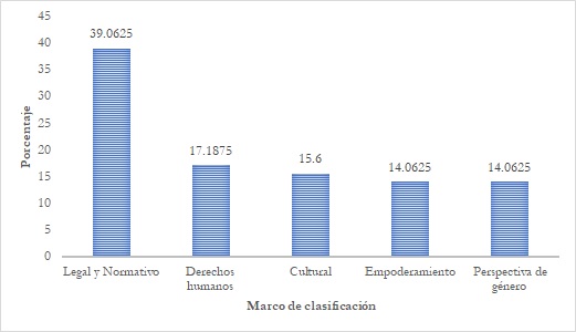 De modo general, los estudios en la perspectiva de los derechos humanos (17.2% de la muestra) consideran que la violencia política en razón de género arremete contra el principio universal de respeto de los derechos, lo cual va en detrimento de la construcción democrática del país.