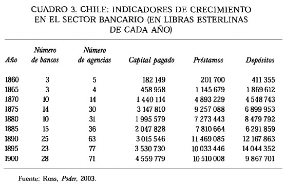 Con todo, es posible advertir que fue en el transcurso de este periodo cuando los bancos chilenos protagonizaron la más espectacular de sus expansiones. Ello, como ya se ha señalado, a raíz del impacto nacional del ciclo salitrero.