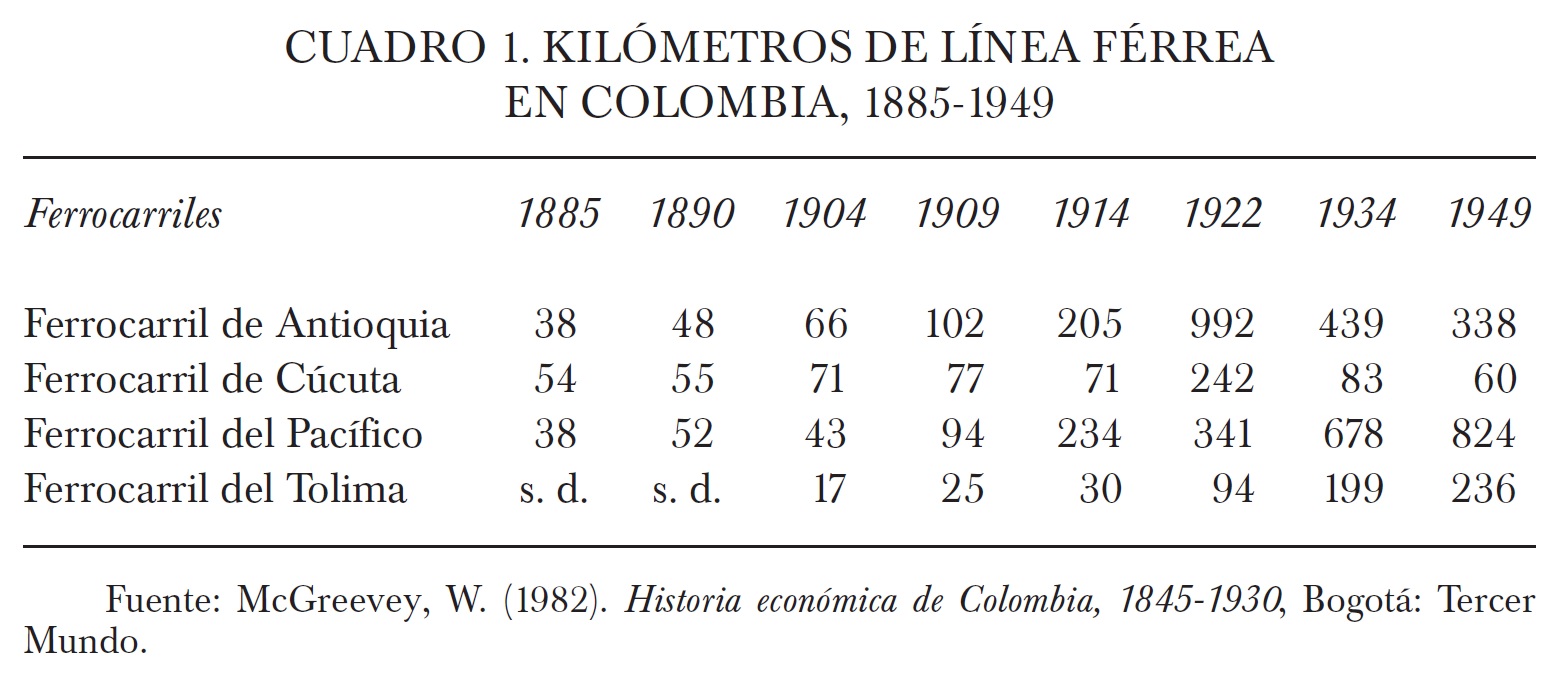 Desde 1876, fecha en la cual se inició el trazado de la línea férrea, hasta 1916, cuando la línea llega a la ciudad de Palmira en el Valle del Cauca, diferentes obstáculos, que incluyeron desde conflictos por el trazado de la red, problemas de financiamiento, gestión de crédito ante bancos, flujo insuficiente de caja, huelgas de obreros, hasta la quiebra de varios empresarios que terminaron cediendo sus obligaciones contractuales a otros agentes, se constituyeron en enormes dificultades que debían ser superadas en la empresa ferroviaria. Lo cierto es que a partir de 1910 los primeros gobernadores del nuevo ente territorial presionaron al gobierno asentado en Bogotá para agilizar la inversión en el proyecto ferroviario. Esto en parte explica por qué en la segunda década del siglo XX la realización de la obra se aceleró. Entre 1914 y 1949 los ferrocarriles de Antioquia y de El Pacífico tuvieron una mayor ampliación en vía férrea en comparación con los demás (véase cuadro 1).