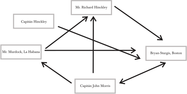 FIGURA 1. AGENTES ENVUELTOS EN LA CORRESPONDENCIA DE BRYAN AND STURGIS CON LA HABANA, ENERO DE 1816