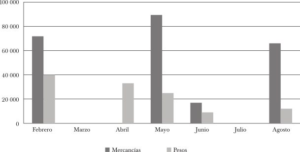 ¿Pesos de plata o azúcar? Aunque la respuesta a simple vista parecería evidente, la toma de decisiones en la selección y envío incluye una amplia variedad de factores y cálculos. Se puede dar una respuesta aproximada a la pregunta con las operaciones del comerciante Girard entre 1799 y 1800 (véanse gráficas 1 y 2).