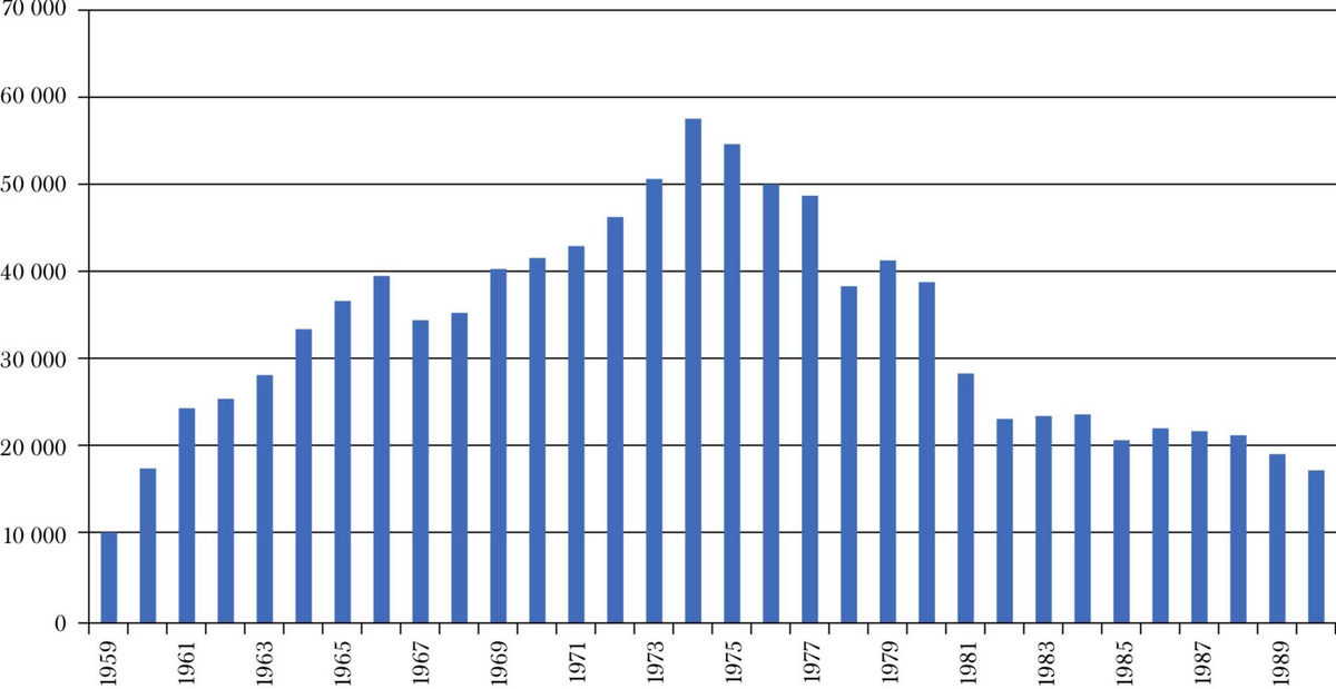 | 1970 | 23 908 | 2 269 417 | 10.5 |