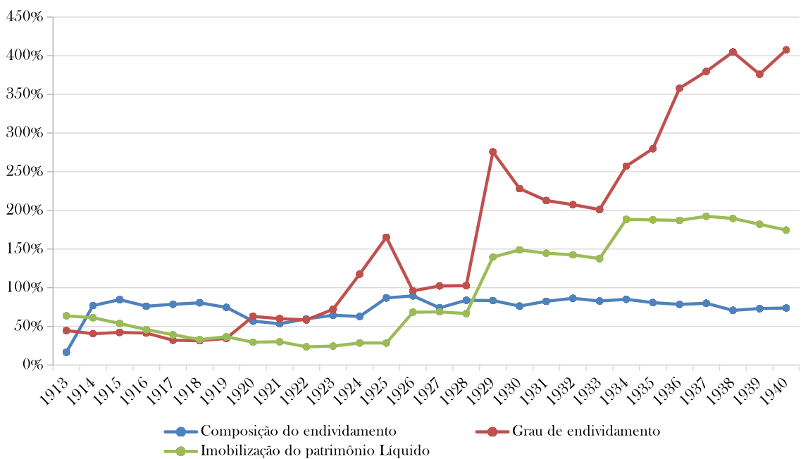 Fonte: elaboração própria com base nos balanços contábeis publicados pela companhia no período de 1913 a 1940.