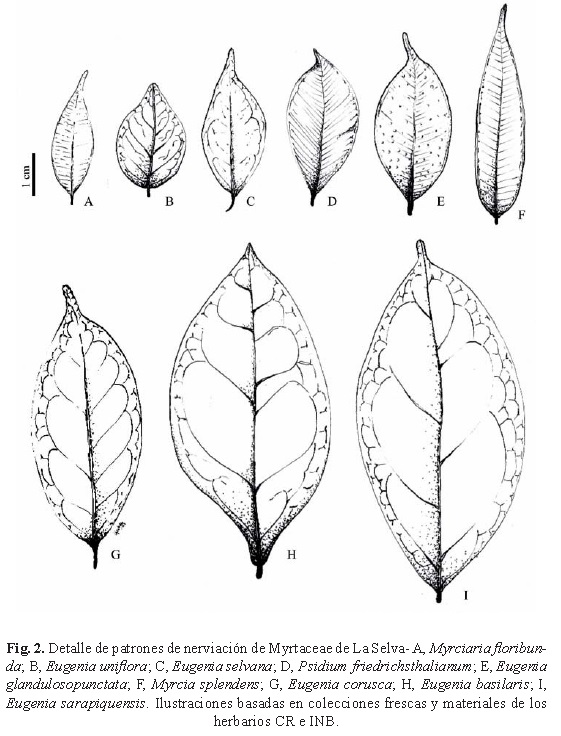 Palabras clave: Costa Rica, Estación Biológica La Selva, morfología foliar, Myrtaceae, patrones de nerviación.