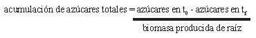 De esta manera, la acumulación de azúcares totales se puede expresar como mg de azúcares totales acumulados-mg-1 de raíz seca.