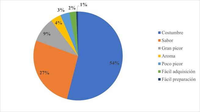 Figura 7 Razones de preferencia de los chiles silvestres en comunidades ch’oles de Tacotalpa, Tabasco.