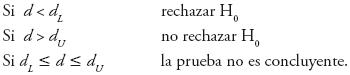 Cuando la prueba se emplea para detectar autocorrelación negativa se emplea el estadístico 4d, usando como límites 4dL y 4dU y la misma regla de decisión.
