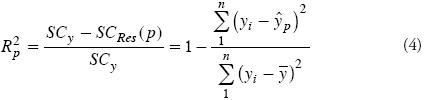 p es la estimación de la variable yi a través de la ecuación de regresión, por ello SCRes(p) es la suma de cuadrados de los residuos y SCy es la varianza total de la variable dependiente cuya media aritmética es