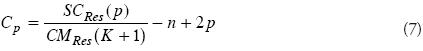Este criterio tiene un comportamiento de decaimiento que se estabiliza y luego crece, pues en algún punto (p) la disminución del numerador no es suficiente para compensar la pérdida de un grado de libertad del denominador. Entonces el subconjunto óptimo será el que define el valor mínimo, cuya expresión es (Montgomery et al., 2002):