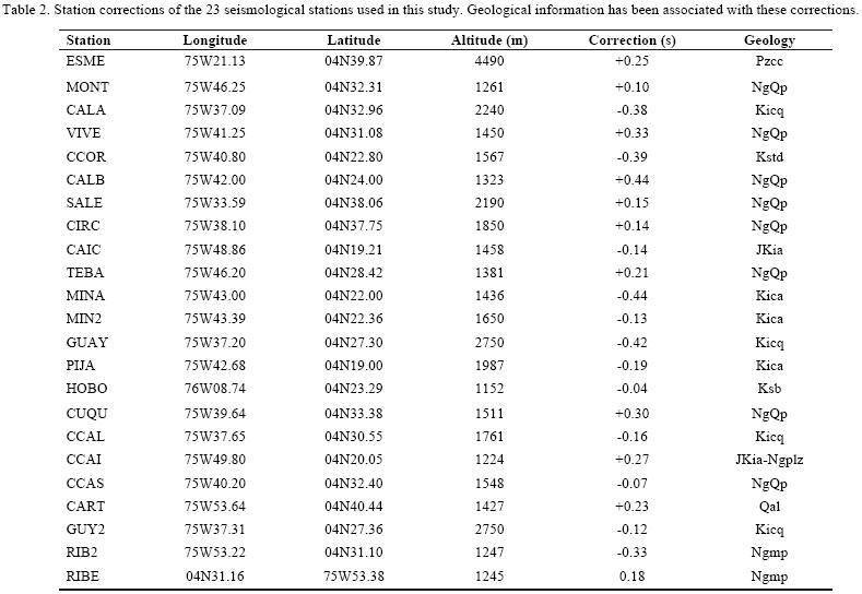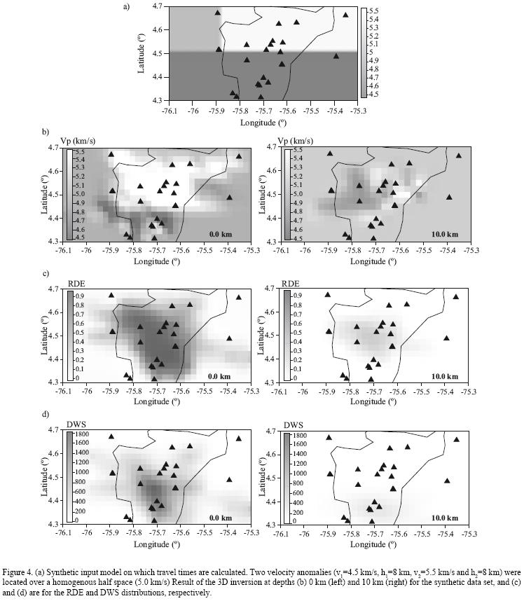 We are grateful to Lina Espinosa for her help to prepare the row data. Lina Ospina and Aracelly Gallego who worked hard and provided us with useful geologic data. We also thank Marisol Gomez for her important work to maintain the seismological network of OSQ. We are grateful to the OVSM and in general to INGEOMINAS for the technical support and helpful suggestions. This work was supported by the Centro de Investigaciones de la Facultad de Ingeniería of the Universidad del Quindio and the Geophysics Research Team at Universidad Nacional de Colombia, Sede Bogotá.