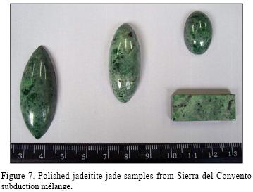 The Sierra del Convento outcrops bear gemquality varieties of jade. This, and the large quantity of jade in the deposits, suggests it can be exploited and used in jewelry (Figure 7). We propose that, based on the inhabitants similarities, additional jade occurrences may be discovered in other parts of the Sierra del Convento mélange and in La Corea mélange (Sierra de Cristal).