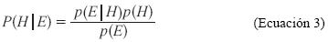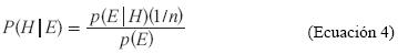 p(E) es la probabilidad de la evidencia E, p(E|H) es la probabilidad condicionada de la evidencia E dada la hipótesis H.