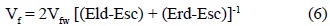 donde Vf también es conocido como valor del encajamiento; Vfw es el ancho del valle del río (se suele tomar un valor mínimo de ancho de cauce, en este caso fue de 50 m, adecuado para una escala 1:50000); Eld-Esc es la diferencia de nivel máximo de la ladera derecha del valle, menos la cota a la que está el cauce del río en la misma transversal; y (Erd-Esc) es la misma diferencia pero en la ladera izquierda. Cuanto más ancho sea el río y menos altas las divisorias de su cuenca de drenaje, mayor será el valor del índice obtenido.