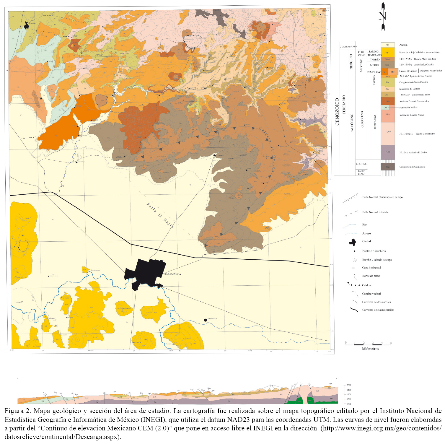 Palabras clave: Falla de El Bajío, mapa geológico de Salamanca, estratigrafía volcánica, volcanismo cenozoico.