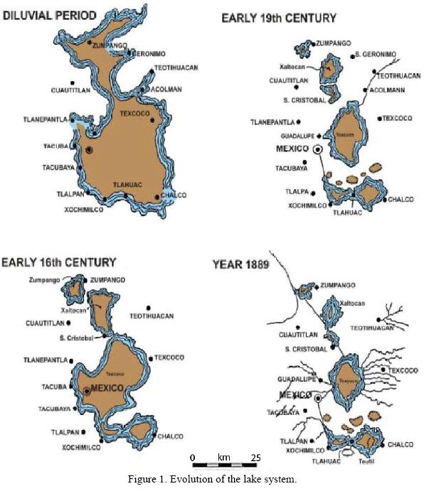 As is cited in Cerca et al. (2012) the Aztec city of Mexico-Tenochtitlan was founded in the year 1325 on a marshy isle in the middle of Lake Texcoco. This lake, the lowest portion of a closed basin surrounded by volcanic mountain ranges, overlies a series of clays and clayey silts formed by the chemical degradation of pyroclastic materials driven into by water flows and winds. These clays are notorious for their extremely high water contents, their considerably low shear strength and their remarkably large compressibility.