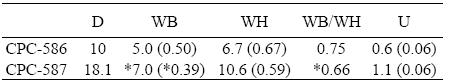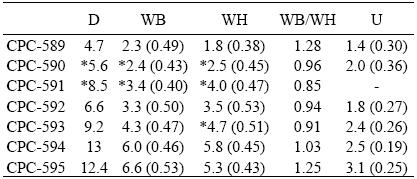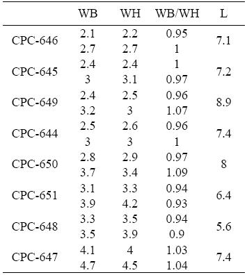Dimensions. CPC-588. D: 5.3, WB: 2.5 (0.47), WH: 1.6 (0.30), WB/WH: 1.56, U: 2.3 (0.43).