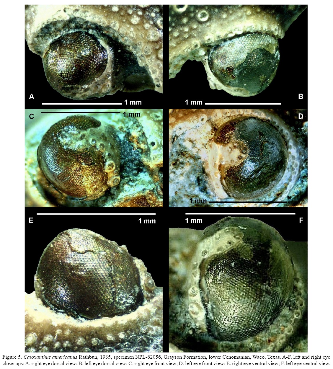 Keywords: Caloxanthus, Cenomanian, composite eye, Crustacea, Exceptional preservation, eye, Grayson formation, Waco, Texas.