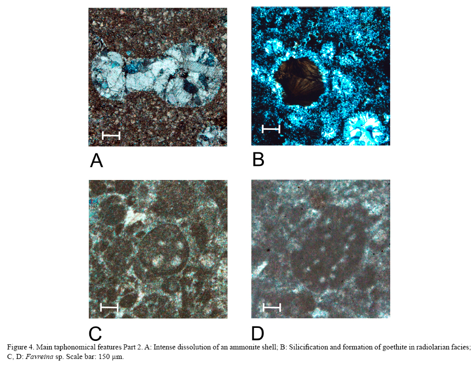 Taphonomical processes were interpreted in order to define the different preservation stages (accumulated, resedimented or elaborated entities), following the guidelines of Fernández-López (1984, 1986, 1988, 1991a, b).