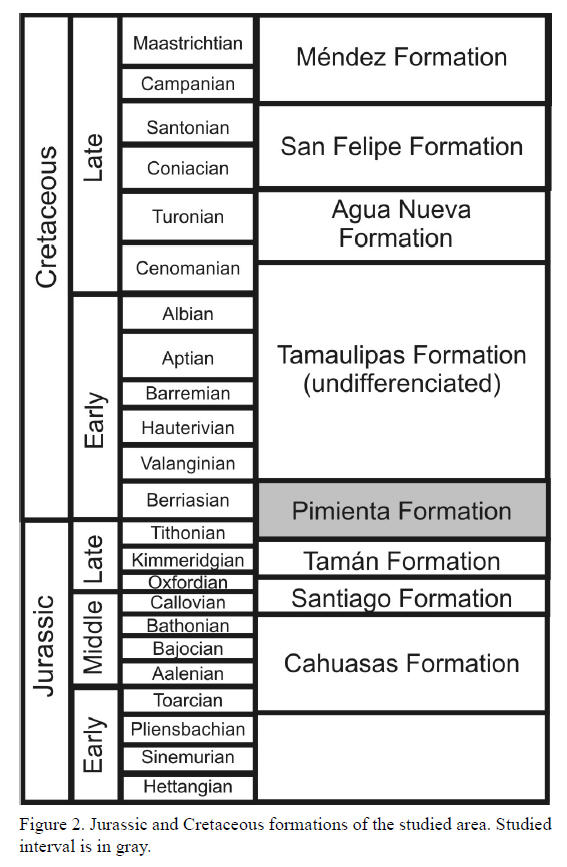 The present work focuses on a section in the Pimienta Formation, in the upper part of the open marine carbonate-siliclastic unit (Figure 2).