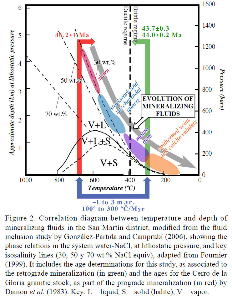 In this paper, we report the first age determinations of any of the metallic mineral assemblages of the San Martín deposit, and essay a possible rate of overall cooling between prograde and retrograde mineralization.