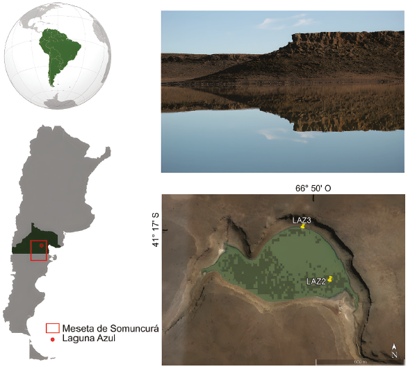 El análisis de magnetismo de rocas sobre LAZ2 reveló la presencia de (titano) magnetita, así como variaciones en el tamaño de grano magnético a lo largo del perfil que se ajustan bien a los cambios litológicos y permitieron hacer un análisis preliminar de las posibles variaciones paleoambientales en la Laguna Azul. Este estudio preliminar se destaca por ser pionero en la meseta de Somuncurá, Argentina.
