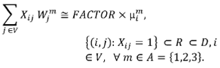 R is a subset of relevant arcs from D that are constructed using this pre-processing heuristic to reduce complexity. FACTOR serves as a capacity value of the respective activity measure for a particular branch. FACTOR is commonly set to 5 during our implementation.