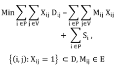 Objective Function: we implement a p-median location model with the objective function (PI. 1) minimizing the sum of the Euclidean distances between each BUj and its center BUi. Hence, minimizing dispersion is equivalent to maximizing compactness. The set V(set of all available BU's) can be partitioned into the set of ρ disjoint territories, P. The objective function finds the initial location and type of ρ branches to be selected as territory centers.