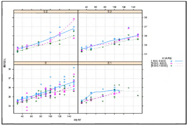 Locally weighted regression (loess) analysis was used via the R software package 23. Loess is a non-parametric regression method for fitting a regression surface to data through multivariate smoothing 24. After presenting the computational results, a discussion is provided in order to share the gained insights.