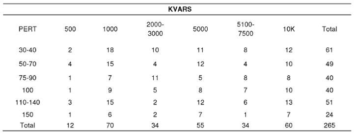 | KVARS = variance weight factor among branches | 1k - 10k |
