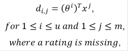 As explained in the previous section, it may be the case that a database with certain grades d (for instance, movie ratings) is incomplete due to the fact that not all users have watched every movie. To complete this rating dataset, a method proposed by 18 called content-based recommender system can be used. Following the example, assume that for each movie we possess a feature vector x1,…,xm containing α movie features (i.e. amount of romance, amount of action, etc.). Then, for each user we learn likewise a feature vector θ 1, ...,θu that represents the user's appeal for the α movie features. With this information, we are able to predict the user's movie rating d using the following calculation: