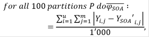 In the second evaluation, our goal is to obtain the missing t = 1,486,126 rankings (93.69%) to compute Y" i,j and eventually calculate a final rating vector for each movie. For this purpose, we applied SOA and OUR to the original dataset Y in order to obtain the complete uxm dataset matrix Y SOA " and Y OUR ", respectively. Once again, OUR was computed for every possible k. In this case, we registered the average error φ between the results obtained with OUR and SOA assuming the ratings obtained by SOA were the ground truth. For this purpose, the following equation was used: