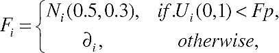where Ni (0.5,0.3) denotes a Gaussian random number with mean 0.5 and standard deviation 0.3, and ∂i . denotes a Cauchy random variable with scale parameter t = 1. In our approach, Fp in equation 5 will be self-adapted according to equation 6: