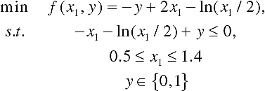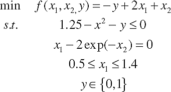 For the function evaluation, in order to handle integer variables, real values are converted into integer values by truncation. The handling of binary variables is given by equation 14.