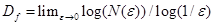 donde N(ε) es el número de celdas de tamaño ε necesarias para cubrir el conjunto. Una forma de calcular la dimensión fractal Df es mediante la representación de N(ε) vs ε en gráficas log-log. Si se obtiene una relación lineal con un coeficiente de correlación alto entonces Df se identifica como la pendiente de la recta [7].