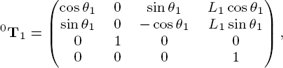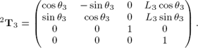 La matriz de transformación homogénea que describe la traslación y rotación entre el i-ésimo y el (i − 1)-ésimo sistema de coordenadas se representa en (1). La ubicación de la punta de la pata con respecto al origen está definida en las ecuaciones (5), (6) y (7), las cuales se obtienen utilizando las matrices de transformación homogénea definidas en (2), (3) y (4) [14]: