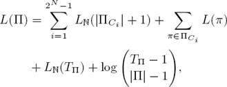 Let N be the number of languages. Our models consist of N alphabets Σi and a correspondence rule table, which we call Π. Our total model description length is