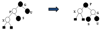 An element is always removed from a leaf class. For the AVL tree case (Parameter RED_BLACK is False), the process terminates. However, for the Red-Black tree case (Parameter RED_BLACK is True), if the height of this class became equal to -1, i.e. it underflows, the algorithm described below is applied. This consists in going upward the tree from the removed node towards the root of the tree (Tree), by making one or several operations among the following: