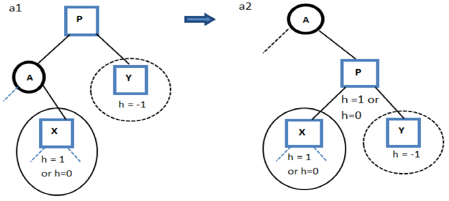 - Rotation(P, Dir): makes a left rotation around node P if Dir=1 and a right rotation if Dir=0. It returns the node that replaces P