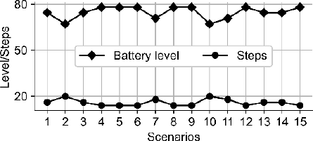 Fig. 4 Battery level and the number of steps with which the robot completed each of the proposed scenarios