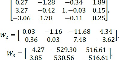 The synaptic weights for this architecture shown in Fig. 12 are the shown in Fig. 10. 𝑊1 =