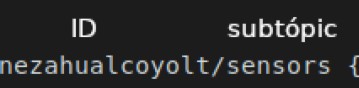 For this project the topic used is individual for each telemetry device. It depends on the name specified inside the SSL certificate. In addition to the name of device, the topic contains a subtopic. This subtopic delimits the information that come from sensors.