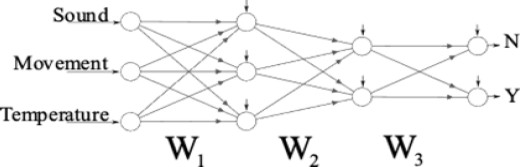 Data used to train and test an ANN were collected from its sensors: sound sensor, temperature sensor and motion sensor. Table 1 shows a summary of the type of output for each sensor.