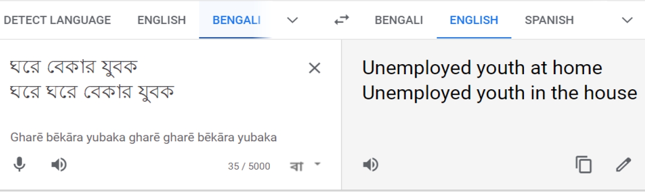 / ghare ghare bekar yubaka (Unemployed youth at every house).
