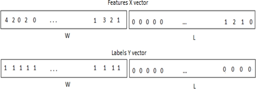 To create the feature vector X, column W is concatenated with column L to form a single vector, as shown in Figure 2.