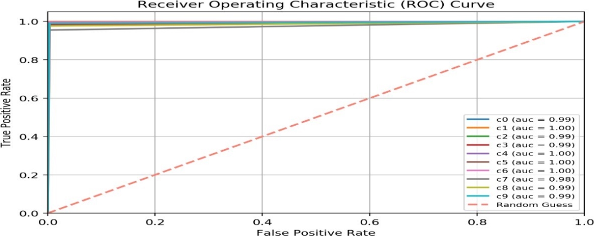 The approach of [1] provides good results regarding detect driver distractions while driving, however our approach detects not only the 10 classes of distractions mentioned in Table 1 and provides an accuracy of 99% in a short time through the use of transfer learning.